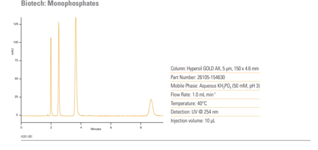 Obr. 1 Analýza monofosfátů na koloně Hypersil GOLD AX