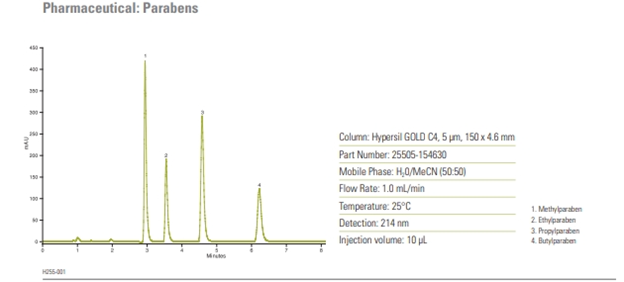 Obr. 1 Analýza parabenů na koloně Hypersil GOLD C4