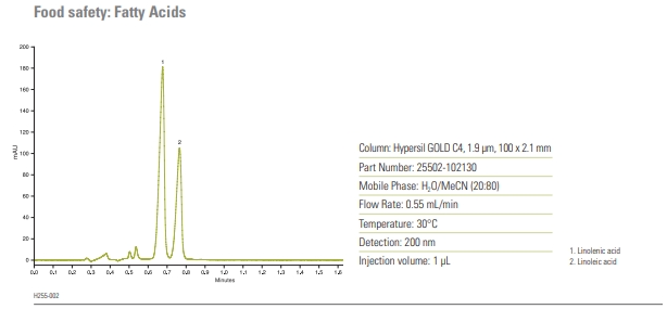 Obr. 2 Analýza mastných kyselin na koloně Hypersil GOLD C4
