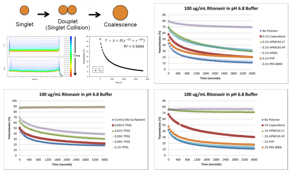 s ritonavirem jako modelovou sloučeninou. Fyzikální nestabilita kapiček obsahujících různé koncentrace ritonaviru byla sledována přímo