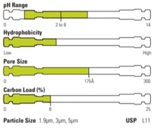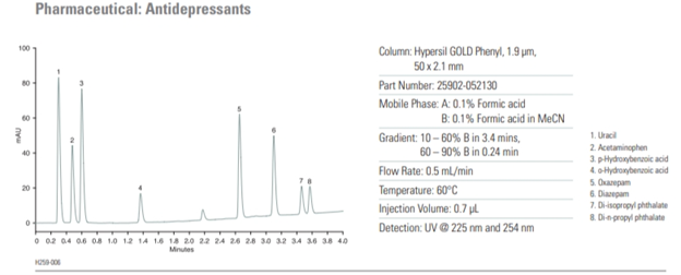 - Rozšiřuje možnosti selektivity oproti standardním alkylovým fázím